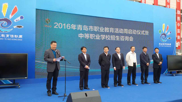商务学校校长孙信成在2016年青岛市职业教育活动周启动仪式上发言